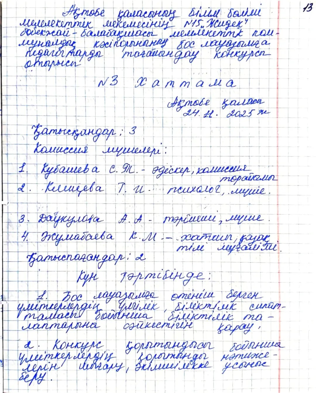 Қазақстан Республикасы Оқу-ағарту министрінің 2025 жылғы 31 наурыздағы № 57 және Қазақстан Республикасы Еңбек және халықты әлеуметтік қорғау министрінің 2025 жылғы 31 наурыздағы № 96 бірлескен бұйрығы негізінде 24.11.2025ж күні отырыс өтті.